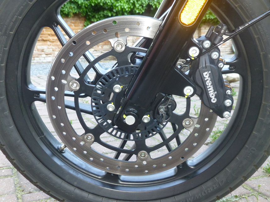 Na jejím předchůdci, s objemem 750 ccm, jsem jezdil loni v dubnu. Záměrně jsem svůj loňský text nečetl. Abych neopisoval. Takže. Motorka je sice poměrně malá, ale je to pouze otázkou zvyku a také preferencí. Tím, že není určena k cestování, ale projíždění se, jak jsem již psal, za krásného počasí, jsou její rozměry naprosto v pořádku. Je skvěle ovladatelná jak v malých, tak větších rychlostech, protože o velkých nemůže být ani řeč. Tedy i když se vypravíme někam, kde je větší frekvence motorek, klidně, s úsměvem a pochopením se necháme předjíždět, protože jsme tam ze zcela rozdílného důvodu. My si užíváme volnost, pohodu, zvuk motoru a potěšení, ze souzněni s nádherným strojem. Na rovinách nic moc, to je jenom přesun, ale jakmile se dostaneme do nějaké romantičtější krajiny, kde máme zatáčky, výjezdy a sjezdy, a navíc dobře udržovanou silnici i krajinu, je to čirá radost. Motorka dělá přesně to, co po ní chceme. Akceleruje, perfektně drží stopu v zatáčkách, díky slušnému kroutícímu momentu si nechá docela dost líbit. Nemusíme být zrovna pedanti na řazení a nakonec i skvěle brzdí. Co víc si na svých projížďkách přát.