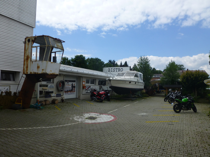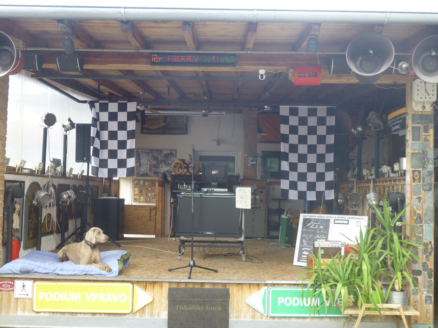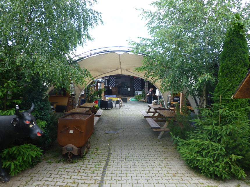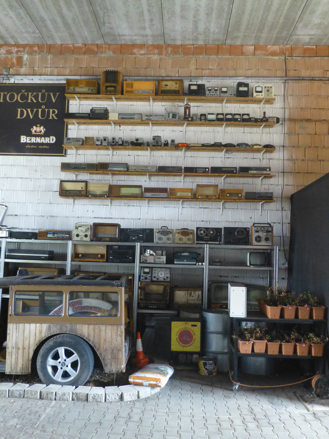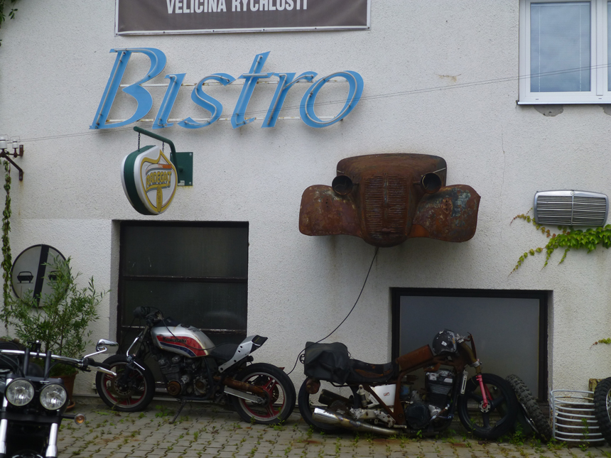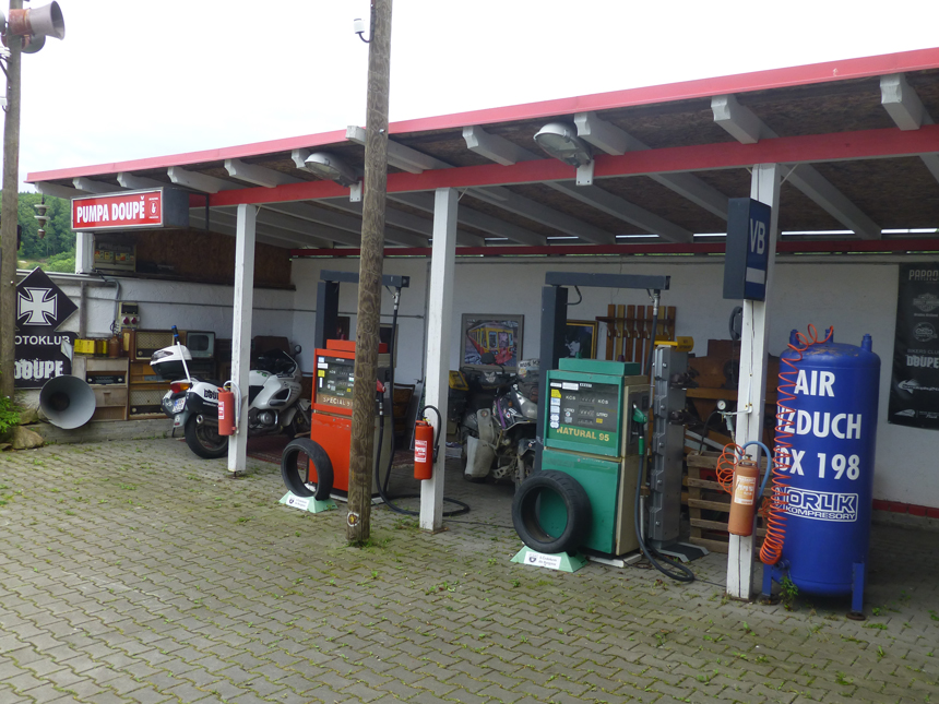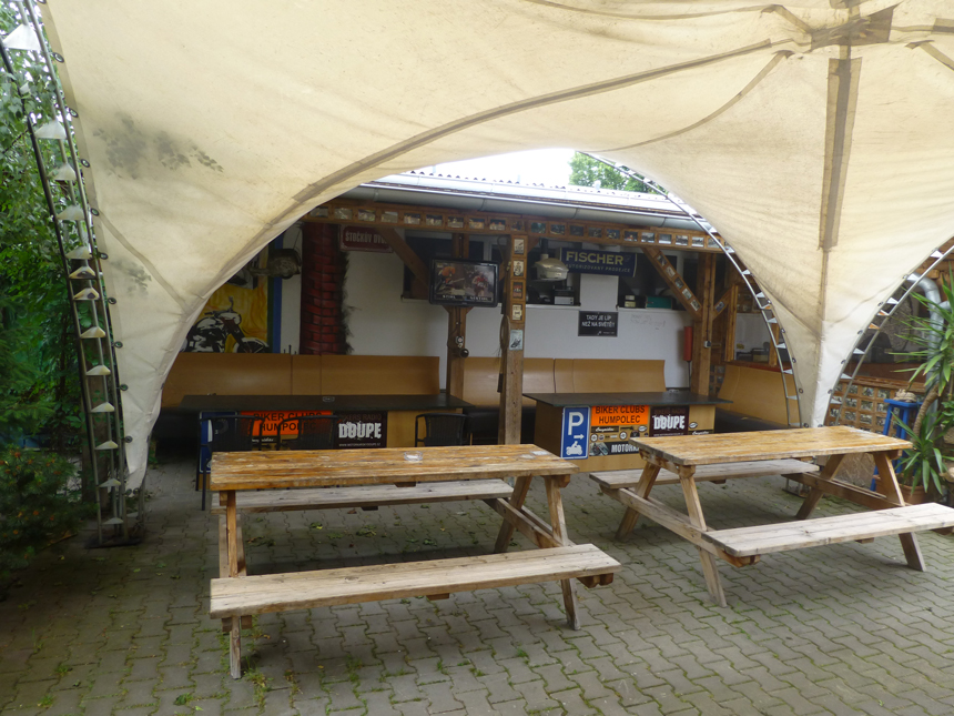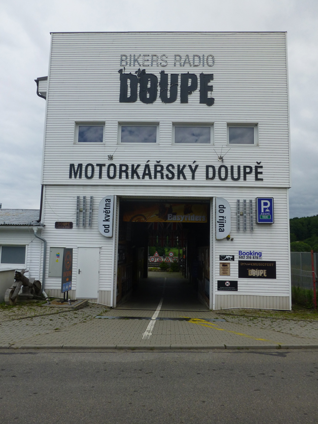 V průjezdu dáme pozor, kdyby jel někdo ven. Bývá tu dost rušno. Motorkáři přijíždějí a zase odjíždějí. Parkoviště má dostatečnou kapacitu, určitě několik desítek motorek. přesto je tu občas plno. Už vstupní část stojí za prohlídku. Od množství starých rádií (sídlí tady BIKERS RÁDIO DOUPĚ), až po starou policejní „rozhlednu“, jaké pamatujeme (někteří) z českých křižovatek.