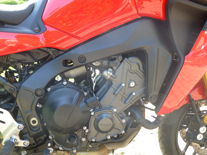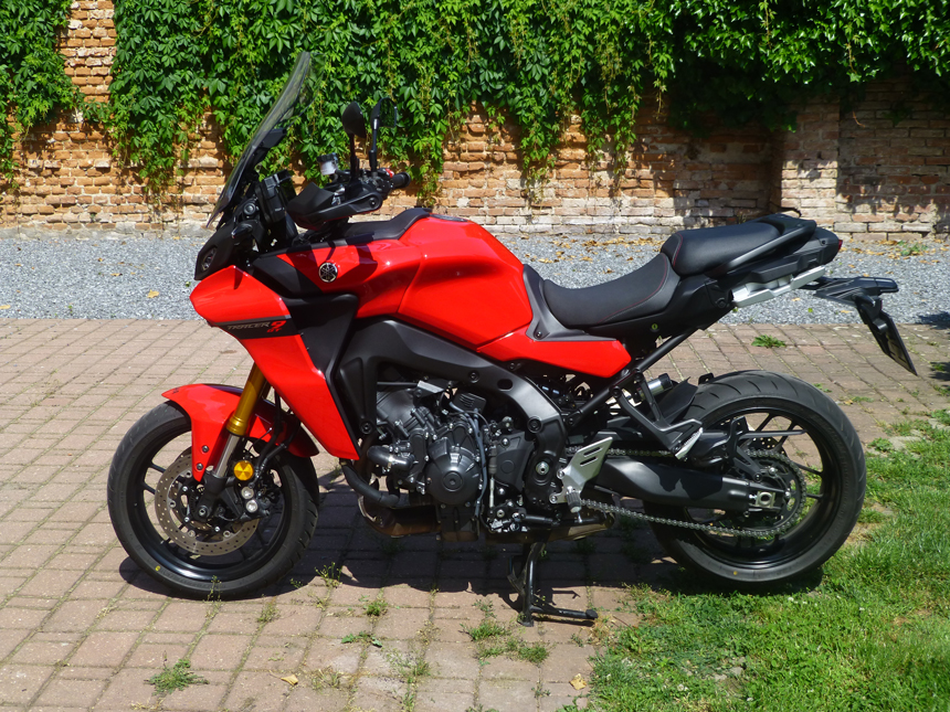 Startuju a tříválec se okamžitě rozbíhá bez sebemenší vibrace. Pravidelně bzučí, ale něco mi v tom chybí. Na tříválci jsem jezdil sedm let. Tak znám jeho zvuk. Předesílám, že zvuk je otázkou vkusu a mnoha jiným jezdcům to naopak bude jistě vyhovovat. Zvlášť při přechodu z čtyřválců. Ale zvuk patří k motorkám a jak se říká: „Motorka musí být vidět a slyšet“. No a TRACER 9 GT zase až tak moc slyšet není.