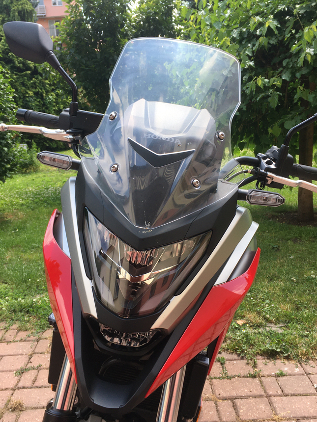 NC750X není pro dlouhány. Vezmeme-li v úvahu, že průměrná výška Čecha je 180 cm, což se mi zdá moc, a žen 166 cm, což se mi zdá naopak málo, vyhovuje NC750X velmi širokému spektru jezdců i jezdkyň. Nemá stavitelný větrný štít. Pokud bych ale měl, dejme tomu, výšku pod 180 cm, cítil bych se za ním, i ve vyšších rychlostech, velice komfortně. Takže pro dívku, či ženu s výškou nějakých 175 cm, bude poskytovat vysokou míru ochrany proti živlům.