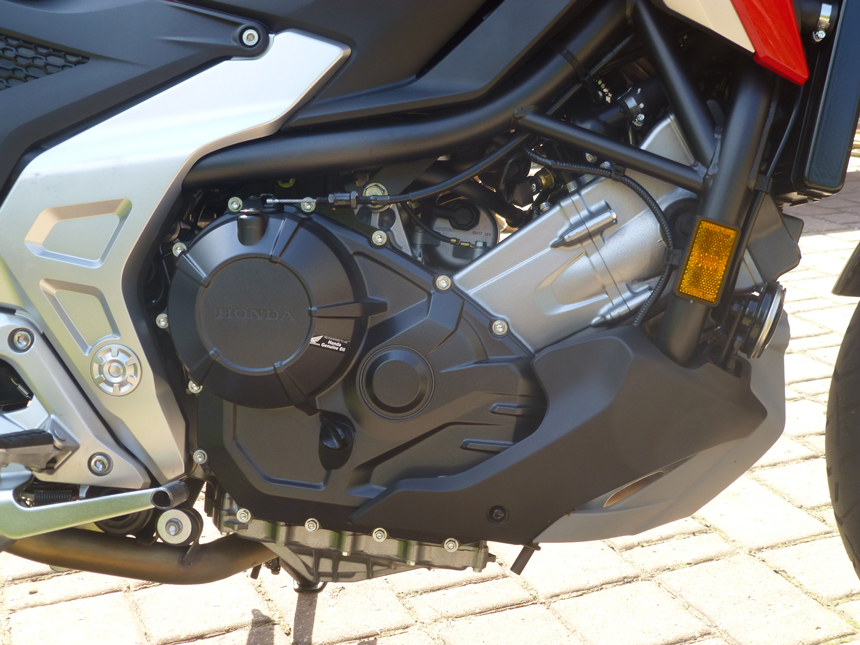 Jak jsem psal už na začátku, od prvního usednutí do sedla a položení rukou na řídítka jsem měl pocit, že NC750X znám. To samé nastalo, jakmile jsem se rozjel. Okamžitě vám padne do ruky. Díky tomu, že nemá přebytek výkonu, pro svou kategorii ho má tak akorát, se ani nemusím moc kontrolovat. Nemám pocit nevyužitelného výkonu, jako u některých jiných motorek. Vše je v souladu. Motor i podvozek. Ve městě jedu v režimu STANDARD. Klidná, relativně tichá, nikoho nerozčilující jízda. Nemám problém proplést se dopravní zácpou až někam k Mukařovu (na motorce jezdím z Prahy do Pardubic nejraději přes Kutnou Horu). Jakmile se silnice uvolní, přepínám na SPORT. Rozdíl je výrazný. Nejenom výkonový, ale i zvukový. Z tlumiče se line příjemné „dunění“. Příjemný zvuk působený nejen posun klikových hřídelů o 270o, ale také nerovnoměrný interval zapalování.