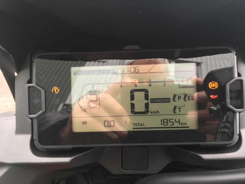 Dnešní elektronikou (někdy víc než jezdcem) ovládané motorky se neobejdou bez celé řady jízdních režimů, nastavení a roztodivných pomůcek. Doba si to žádá. A tak i NC750X je obdařeno třemi přednastavenými jízdními režimy: SPORT, RAIN a STANDARD, a možností individuálního nastavení v režimu USER. Nebudu se věnovat detailům. Naprostá většina jezdců a jezdkyň si bohatě vystačí s třemi základními režimy. NC750X je všestranná, univerzální motorka, pro každodenní ježdění. Do zaměstnání, na drobné nákupy, na víkendové výlety a, když ji dovybavíme kufry, i na dovolenou. Zvolenému jízdnímu režimu se samozřejmě přizpůsobuje i charakteristika převodovky, v případě, že máme DCT. Já jsem měl k dispozici stroj s manuálním řazením. Díky hezkému počasí jsem nevyužil režim RAIN. Pro průjezd městem jsem volil SATANDARD a jakmile jsem z města vypadl, přepnul jsem na SPORT. A ten už tam zůstal. Převodovka funguje dokonale. Spojka vyžaduje minimální sílu, zabírá citlivě a kvalty tam padají s naprostou samozřejmostí. Tak, jak je u Hondy zvykem.