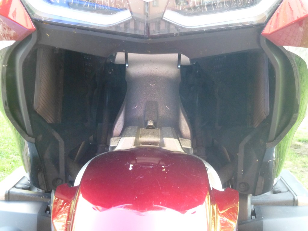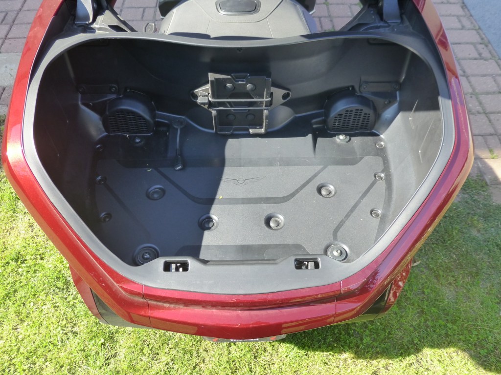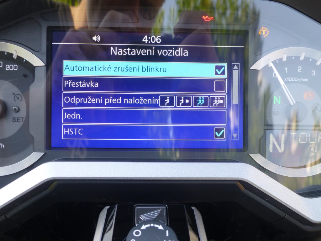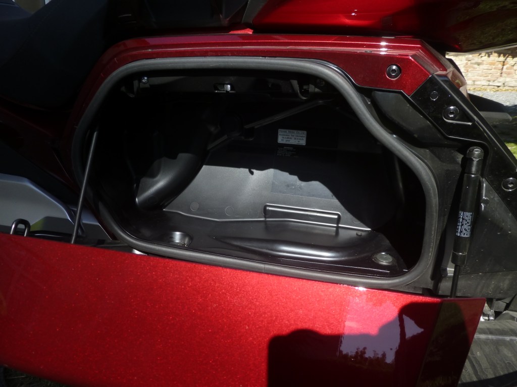 Abych ale jenom nechválil. Podotýkám, že toto je zcela subjektivní názor. Neskamarádil jsem se s ovládáním navigace. Možná jsem ji jenom nevěnoval dostatečnou pozornost. Je možné nahrát data tras do navigace prostřednictvím USB portu umístěným v kufru, což jsem nezkoušel. Ale podle mého názoru by si GOLD WING zasloužil spíš motorkářskou navigaci. Tato mi připadá, i díky svému ovládání, jako navigace převzatá z auta. Druhým nedostatkem je podle mne ne objem, ale využitelnost bočních kufrů. Při pohledu zezadu vypadají jako velmi objemné. Ale díky své vnitřní členitosti a tomu, že do boku odklápěcí víka jsou skoro objemnější nežli pevná část, jsou špatně využitelné. Cestovní stroj tohoto kalibru by si zasloužil lepší řešení. Nakládání ne z boku, ale shora.