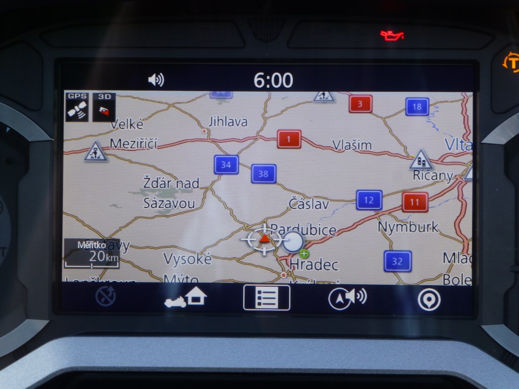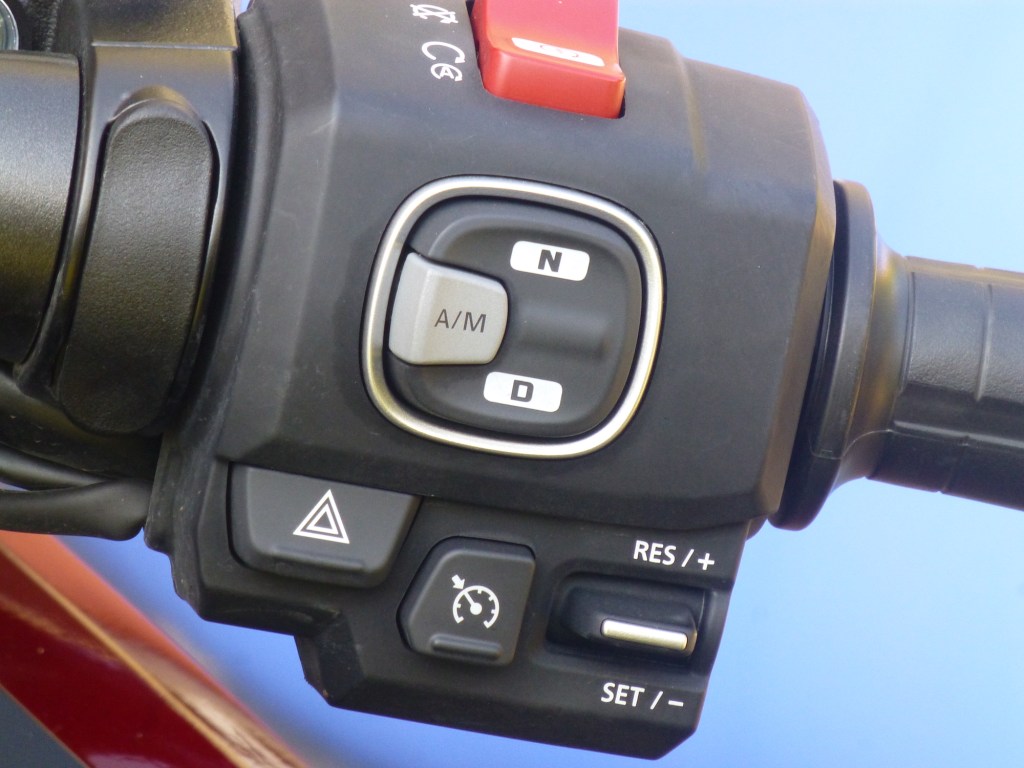 Musím uznat, že sedmistupňový automat, s DCT, řadí jako z partesu a k charakteru motorky naprosto sedí. Jenom občas, když jsem si chtěl víc přibrzdit do zatáčky, jsem využil sekvenční řazení prsty levé ruky. Řazení nahoru jsem nechal plně v režii automatu. Co jsem ocenil při parkování, je systém pomalého popojíždění vpřed i vzad. Při zařazeném neutrálu zmáčkneme palcem levé ruky tlačítko, pod námi to cvakne a pak už jenom „pádly“ řazení posouváme motorku dopředu nebo dozadu. Super vychytávka. Jemné, plynulé, bezpečné. Kdo někdy „stěhoval“ takového „mastodonta“ ví, o čem píšu. Není to sranda.