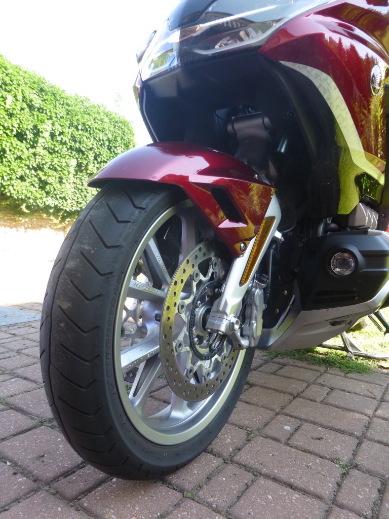 Opticky vypadá současný GOLD WING sportovněji. Což také je. Je o něco užší a lehčí. Přičemž ale neztratil vůbec nic ze své impozantnosti. Stále má úctyhodné rozměry i váhu: délka: 2615 mm, šířka: DCT 905 / MT 925 mm, výška: 1430 mm, rozvor: 1695 mm, výška sedla: 745 mm, světlá výška: 130 mm a hmotnost s DCT a airbagem: 390 / MT 385 kg. Pneumatiky vpředu: 130/70 R 18, vzadu: 200/55 R 16. Při pohledu na tato čísla je nám jasné, že to není žádný drobeček.