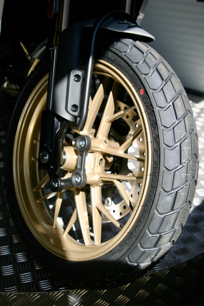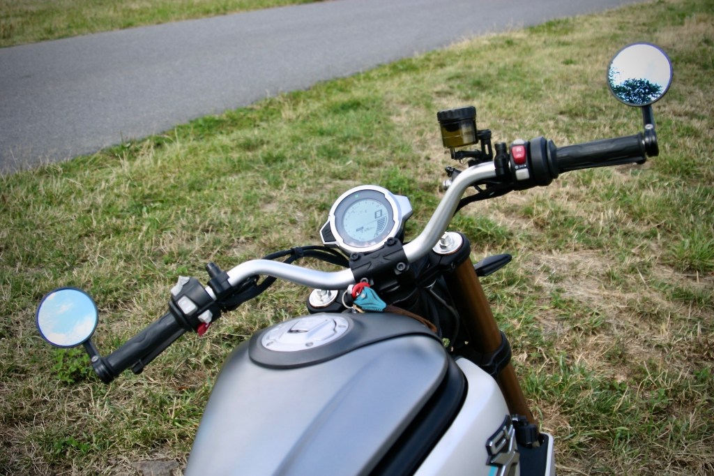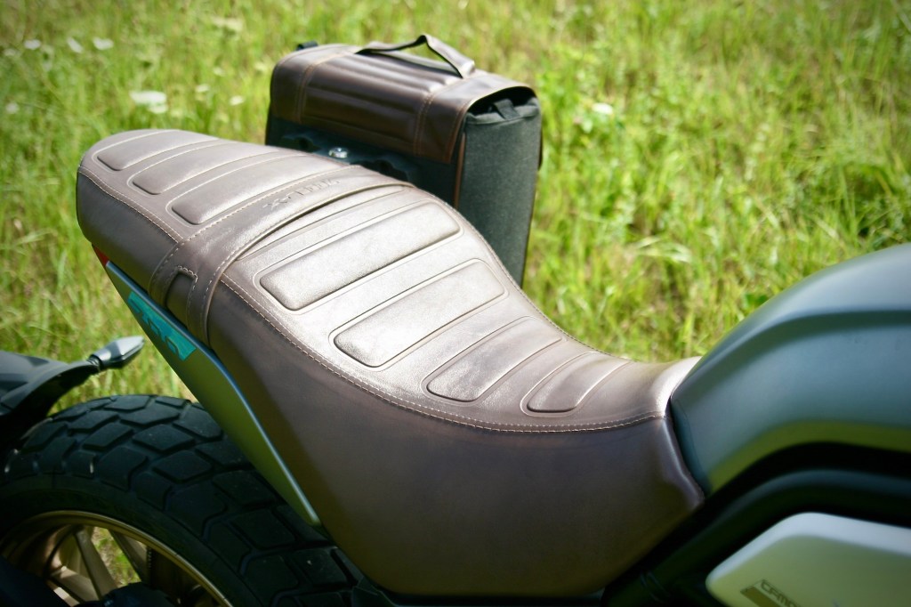 HERITAGE je – podle mne – SCRAMBLER. Není to velká motorka. Opticky. Ani absolutně. Docela dobře klame tělem. Se svou výškou 185 cm jsem na ni v úplné pohodě. Dokonce větší pohodě než na některých motorkách opticky i rozměrově větších. Je to výsledek velmi detailní práce s – ergonomií. Úhly kotníků, kolen a kyčlí. To je základ. Sedím ve vzpřímené poloze a ruce mám lehce položené na sympaticky širokých řídítkách. Vůbec nemám pocit, že bych seděl na malé motorce. Navíc sedím ve velice pohodlném, dobře tvarovaném sedle a když musím dát nohy na zem, nemusím si dávat pozor na v asfaltu vyjeté koleje. Asi nikdy nezapomenu na šok, který jsem zažil na jednom nejmenovaném enduru, když jsem na křižovatce zastavil tak, že jsem měl po obou stranách v asfaltu vyježděné koleje. K tomu ještě pršelo, takže bylo pěkně kluzko. Fakt mazec. Dodnes nevím, jak jsem to ustál a nezpůsobil škodu na majetku a újmu na svém egu. To se mi na 700CL-X HERITAGE stát nemůže. Přitom ale nesedím vůbec nízko. Oči mám ve výši, kdy mám dokonalý přehled o provozu.