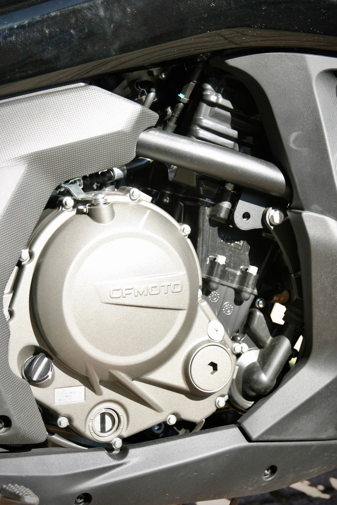 Sportovně – turistický CFMOTO 650GT pohání řadový, osmi ventilový dvouválec DOHC, o objemu 650 ccm, s elektronickým vstřikováním BOSCH a přesazením klikové hřídele o 180o. Motor je prakticky bez jakýchkoliv vibrací. Jeho největší síla je ve středním pásmu otáček, kde nabízí naprosto kontinuální nárůst výkonu. Motor má rád vyšší otáčky a největší výkon podává přibližně v 9000 ot./min.