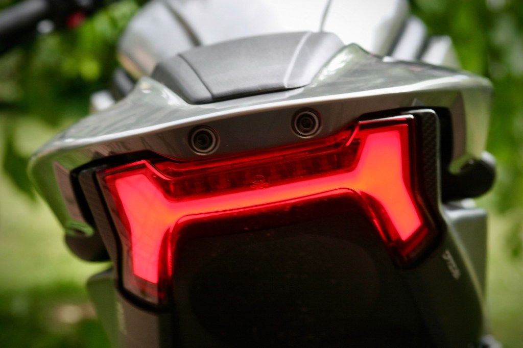 CL-X SPORT má nádherně zvládnuté obtékání vzduchu. Na mnoha naháčích i okapotovaných motorkách známe, že od určité rychlosti to s námi začíná různě intenzivně cvičit. Házet. Turbulence. Na řadě motorek je to až otravné. Tady – nic. Tlak vzduchu, opírající se do hrudníku samozřejmě, se zvyšující se rychlostí, stoupá, ale je zcela rovnoměrný. Dá se klidně napsat – příjemný. Na přídi motorky není nic, co by ho rušilo. Malý štítek, spíš takový nehet kryjící kulatý displej, může ??? hrát pozitivní roli, ale určitě ne významnou. Je to spíš hezký designový prvek. Ani delší jízda vyšším průměrem není unavující.