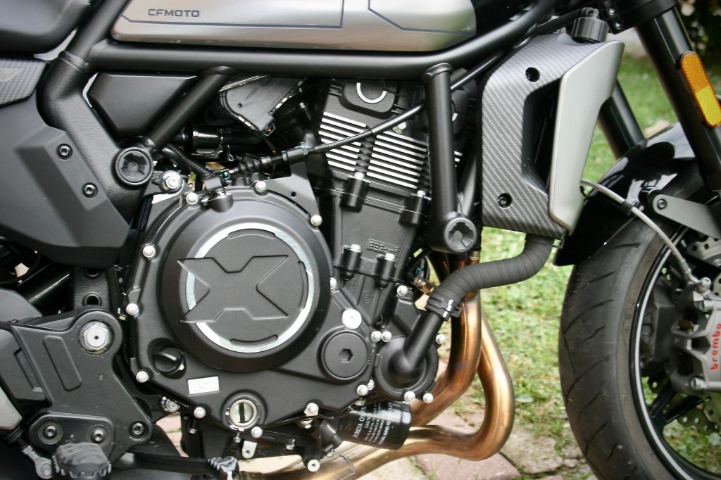 Hned na prvních kilometrech a v prvních zatáčkách jsem přišel na to, jak pevný má CLX SPORT podvozek. Ne, nepraštil jsem s tím. Ale cítil jsem, jak jistě se motorka v zatáčkách vede bez ohledu na jejich rádius a v mezích slušného chování i rychlost. Rám, přední vidlice, zadní kyvka včetně pérování a samozřejmě brzdy. Nejenom, že vše krásně vypadá. Designeři si pohráli s každým detailem. Ale ono to hlavně funguje. Původ jednotlivých komponentů zde nebudu vyjmenovávat, ten je na webu. Mne zajímá, jakým dojmem na mne vše působí a hlavně, jak vše – spolupracuje. A tady to – spolupracuje. První, co jsem si uvědomil, byly brzdy. Ty jsou dimenzované na opravdu sportovní jízdu a disponují úctyhodným záběrem. Na CL-X SPORT jsem bezprostředně přesedl z jiné, nepoměrně krotší motorky, 650 GT, a tak jsem si musel hodně rychle zvyknout. Tyto brzdy (BREMBO) potřebují mnohem citlivější zacházení. Každý jezdec v nich najde opravdu velkou oporu a jistotu.