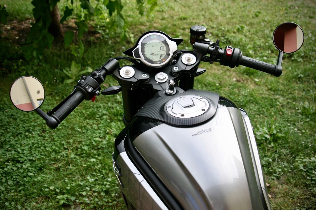 Díky souladu skvěle dimenzovaného výkonu, kroutícího momentu, který dává motoru sílu a odladěnému podvozku včetně brzd, nám dává obrovskou míru jistoty, takže se můžeme pouštět do docela ostrých průjezdů zatáček. Téhle motorce musíte dát najevo svou převahu. Není na flákání. To z ní okamžitě ucítíte – nespokojenost. Chce být ovládána. Jako dobrý jezdecký kůň. Při průjezdech na sebe navazujících zatáček jenom otáčím hlavou, střídám tlak do řídítek a motorka pode mnou reaguje naprosto okamžitě a předvídatelně. Co zatáčka, to nový, pozitivní zážitek.