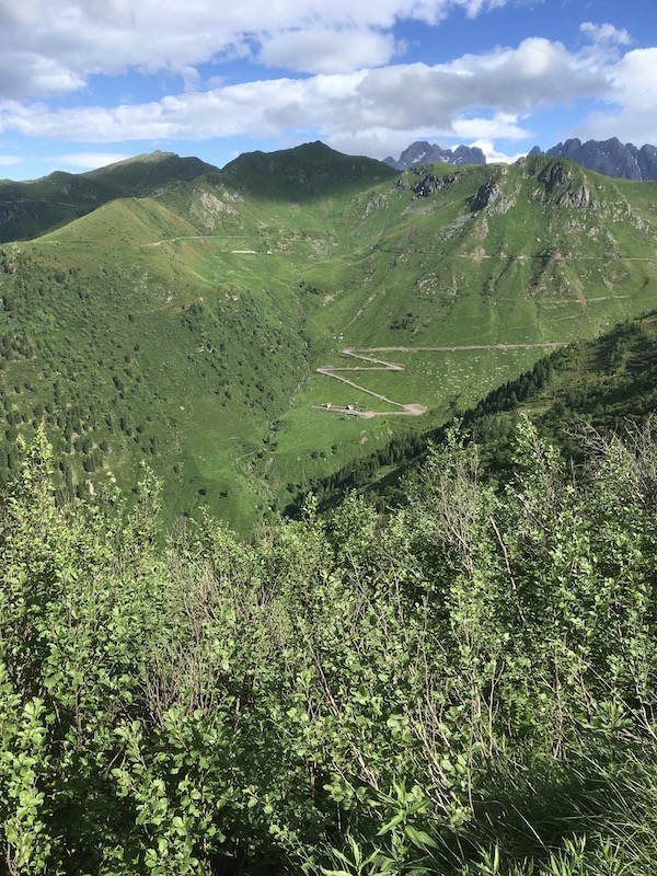 Od západu se začínají blížit hodně temné, až černé mraky, nevěstící nic dobrého. Při těch vedrech se samozřejmě dají čekat bouřky. V horách většinou přicházejí odpoledne, rychle a nikdy nevíte kterým údolím. A jsou hodně prudké. No jo, ale co si počít, když mám dvě možnosti. Buď „stáhnout kalhoty“ a nejkratší cestou bezpečně dojet do hotelu nebo zariskovat, přejet z východu Monte Zoncolan a doufat, že to stihnu.