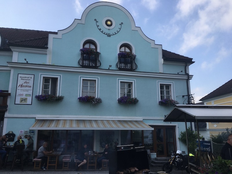 V Mauthenu mám „povinnou“ bezpečnostní přestávku na dotankování, bagetu, kávu a lahev vody, a přemýšlím, kudy to vezmu dál. Aby to za něco stálo. Tak si říkám, že už jsem dlouho nebyl na Sölkpassu. Při tom bych si projel i krásnou, klidnou Innerkremstrasse. No jenomže když přijíždím do Kremsbrücke, tak je tam cedule s informací, že je zavřená. Jediným řešením je jet přes Katschberg. Nic proti tomu. Na Katschbergu teploměr ukazuje devět stupňů Celsiových. Přes bundu oblékám nepromok. Když vyjíždím na lepší výhled, je mi jasné, že ani Sölkpass dnes nebude. Je ponořen do hustého mraku. Moje cesta tedy vede přes Obertauern do Radstadtu. Na Obertauernu je úplně stejná kosa jako na Katschbergu. V Radstadtu opět tankuju a přemýšlím, kudy dál a kam až. Slunce, schované za hustými mraky, je stále hodně vysoko. A tak vyjíždím směrem na Liezen a Admont a říkám si, že kam dojedu, tam dojedu. No a když už jsem až u Dunaje, v Greinu, tak bylo jasné rozhodnutí, dojet až na adresu Ysper 3. Což je bikers friendly Gasthof „Drei Hacken“. Já bych řekl: „U Andyho“. Když, za deset minut sedm, před domem vypínám motor, Andy právě dokončuje přípravy na večeři. Což jsou grilované klobásy dvou druhů, na ohni pečené makrely a velký výběr salátů k tomu. Jo a potom, jako desert, navíc skvělý Kaiserschmaren, tedy trhanec, který já miluju. Aby bylo to sobotní štěstí dokonalé, má volný poslední pokoj. Dokonce to je ten samý, ve kterém jsem spal na konci května, když jsem tam byl, jako průvodce horskými silnicemi, na akci českého zastoupení společnosti CFMOTO.
