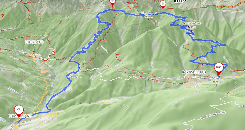 Sjíždím do obce Liarris a odbočuji doprava na velmi úzkou a navigačně docela komplikovanou spojovací silnici směrem na Povolaro. Kdybych vedl větší skupinu nejsem si jistý, že bych tudy jel. U nás by se řeklo, že jsem jel – zadem. V Povolaru najíždím na už širší, krásně zatočenou silnici do Ravascletto. Začíná lehce pršet. Zatím ale tak – příjemně. Za chvíli vidím na druhé straně mělkého údolí „svůj“ hotel BELLAVISTA. Jedu rovnou pod střechu, kde už je schovaných několik motorek. Pro úplnou jistotu, před blížícím se živlem, schovávám motorku v ještě bezpečnějším místě. Vešly se tam čtyři motorky.