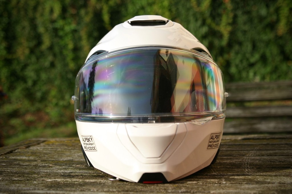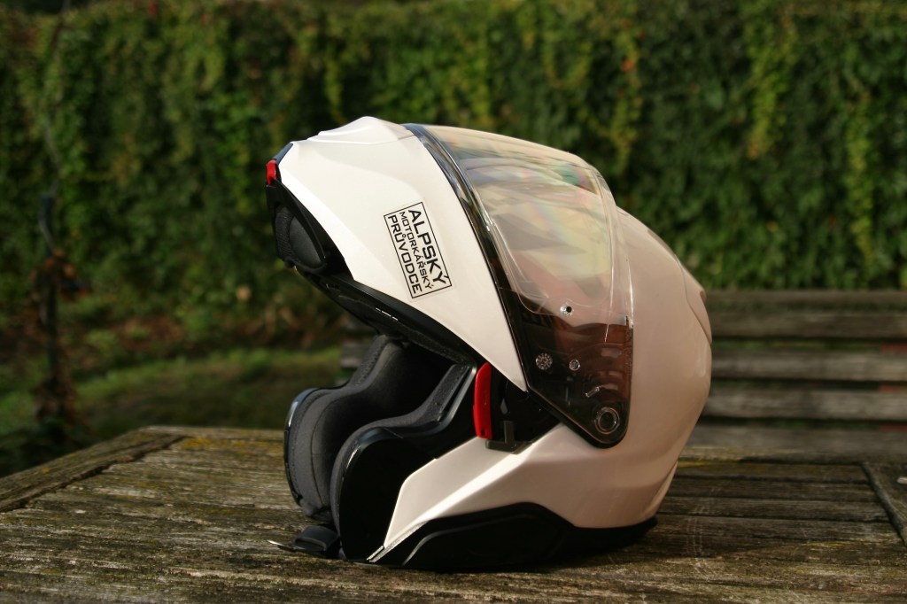 Před letošní sezonou jsem si řekl, že se vrátím k vyklápěčce. Ryzí profesionálové sice tvrdí, že na hlavu patří jedině integrálka. Je lehčí, bezpečnější a kdesi cosi, ale vyklápěčka má své výhody. Nemusím ji neustále sundávat z hlavy. Potřebuju se napít, při placení u pumpy mi obsluha vidí do obličeje, takže si nepřipadám jako terorista, a při volnější jízdě příjemně fouká do obličeje. Pro mne navíc hrál roli i systém zapínání. Už mne nebavilo neustále bojovat s kroužky. No a v neposlední řadě, každý materiál stárne a ztrácí své fyzikální vlastnosti. Takže je třeba, zvláště u ochrany hlavy, udělat změnu. O „potřebě“ občas si koupit něco nového raději nemluvě.
